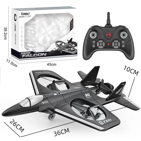 Key Materials/Features: 2.4GHz RC, 360° stunt flips, headless mode, auto return, dual fan propellers, fixed wing style